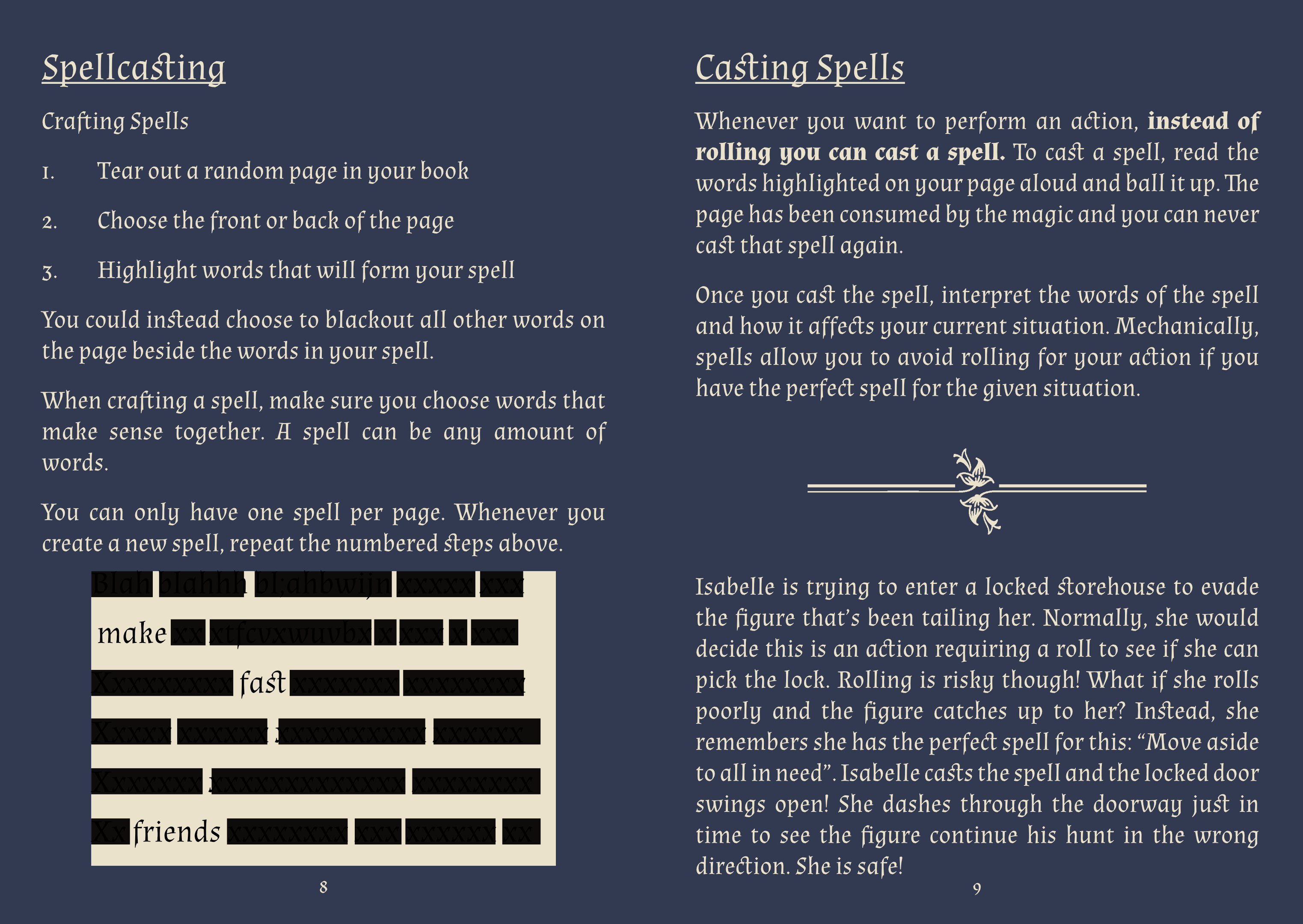 Throughout the adventure, players will highlight, scratch out, and tear pages from real-world books to craft spells for their characters.